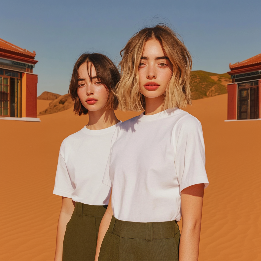 Step into a world where vibrant coral-red and burnt orange hues dominate every frame, creating an almost otherworldly atmosphere that feels both deeply cultural and distinctly modern. This style bathes subjects in warm, sunset-toned lighting that ranges from fiery crimson to soft peach, often contrasted against cool greens, deep blacks, or pristine whites. The aesthetic draws inspiration from East Asian architecture and design elements—think traditional robes, paper lanterns, temple gates, and ornamental florals—while incorporating contemporary fashion and surreal, dreamlike compositions.